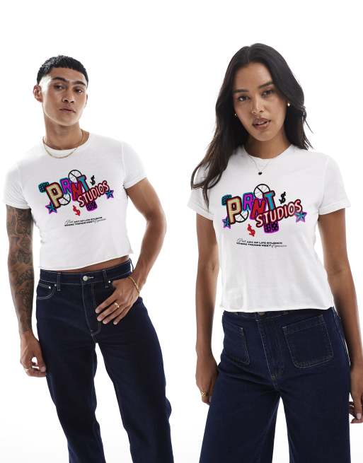 PRNT prnt art studios crop t-shirt in white
