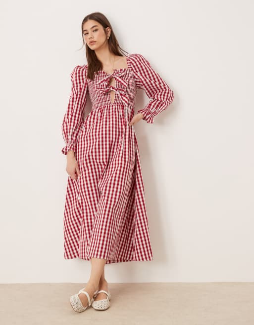 Glamorous Bow front maxi dress in cherry red gingham