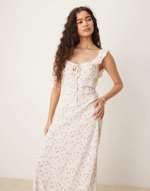 Glamorous square neck midi dress in white base floral