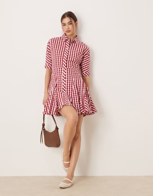 Glamorous swing mini shirt dress in cherry red gingham