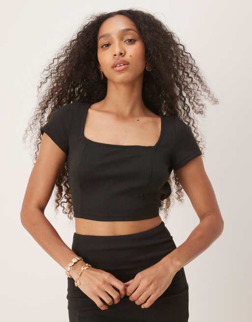 Narrated Square neck tie back crop top in black