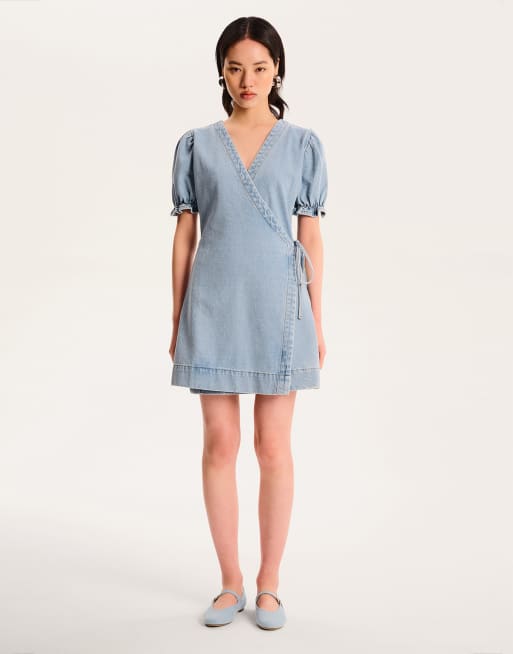 OMNES mikayla wrap front midi dress in blue