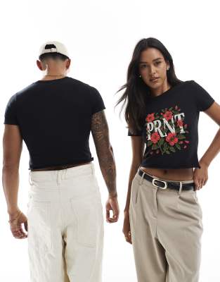 PRNT floral stitch crop t-shirt in black