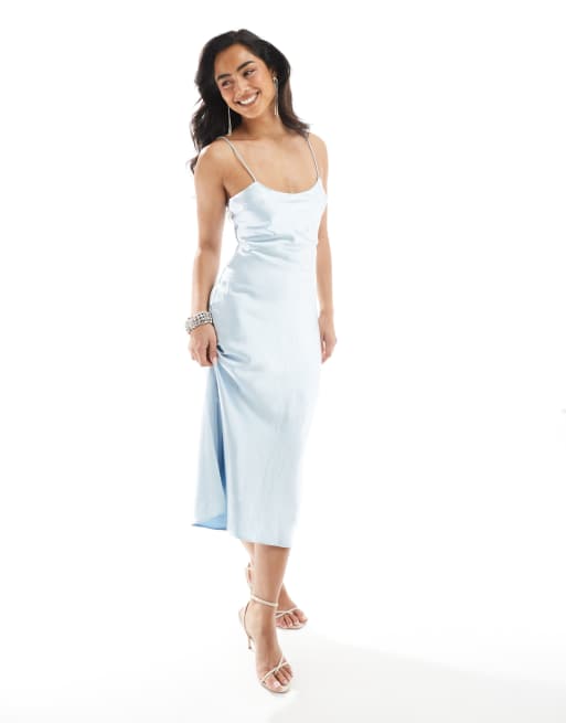 True Decadence Strappy bias cut midi dress in icy blue