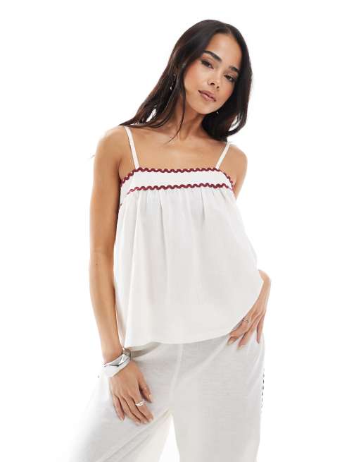 Esmee Exclusive ric rac cami beach top co-ord in white & red