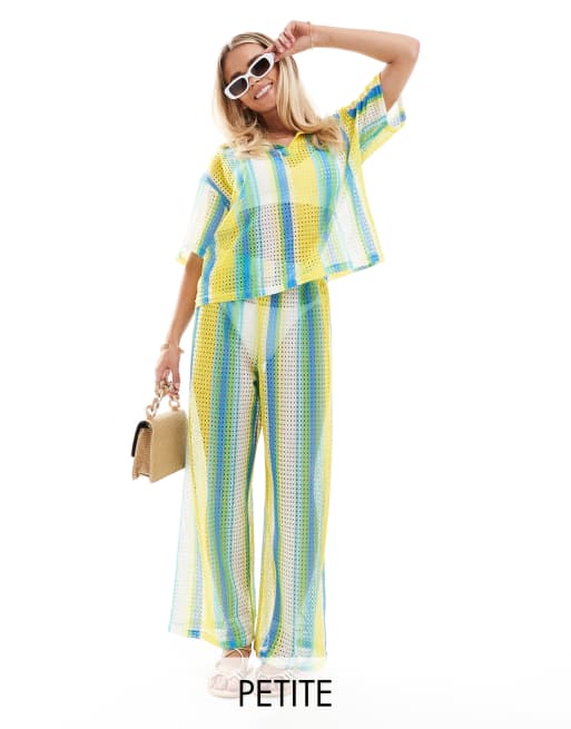 Extro & Vert Petite striped crochet trouser co-ord in multi stripe