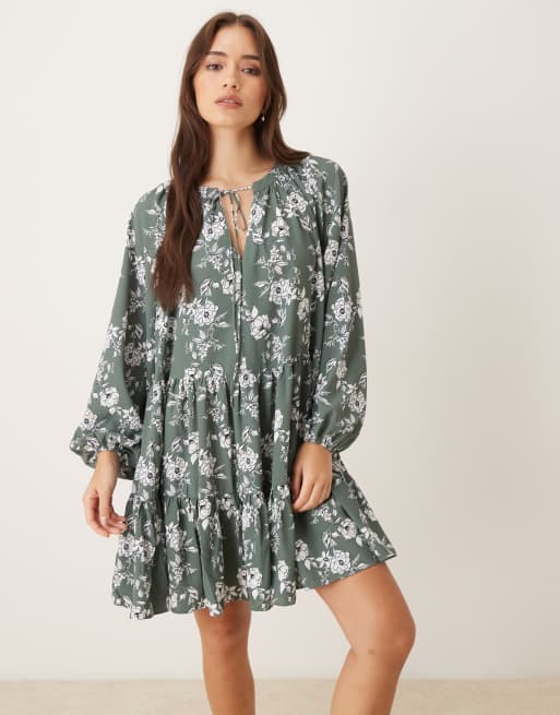 Glamorous Swing mini dress in khaki white floral