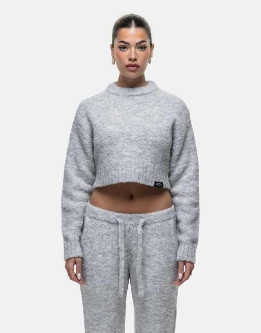 Good For Nothing Cropped bouclé knitted sweatshirt in grey