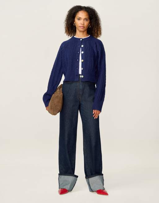 Omnes Knitwear august cable cardigan in navy in blue