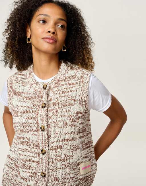 Omnes Knitwear premium 100% cotton button down matilda vest in tonal brown