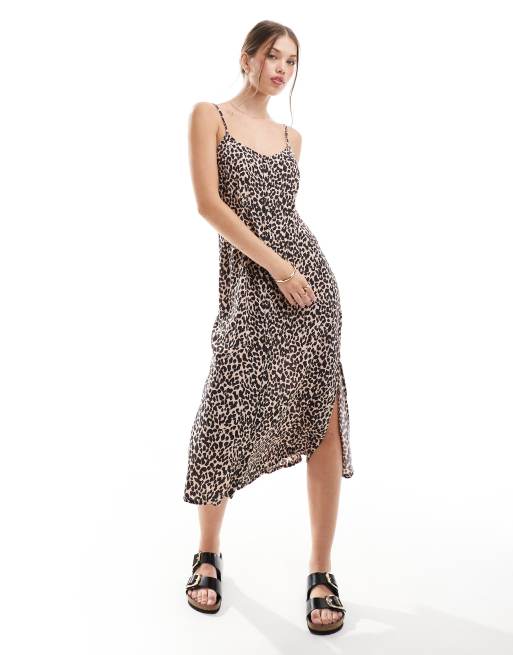 Superdry Printed button-up cami midi dress in pink leopard print - PINK