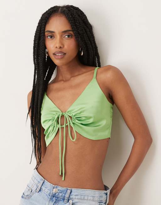 Collective The Label Gathered tie-front crop top in apple green sateen