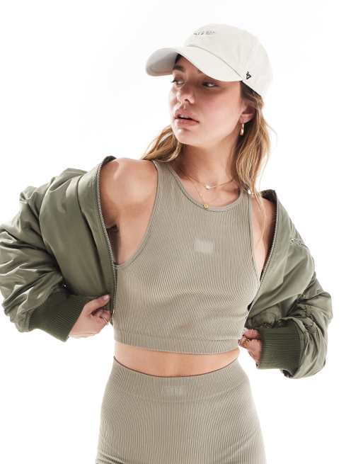 Hera ribbed base racer crop top in grey green