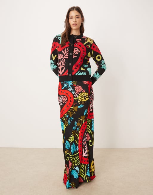 Never Fully Dressed dorris satin maxi skirt co-ord in bright abstract print