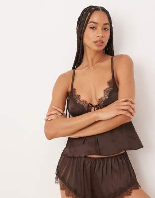 Kat The Label Sorrento satin lace camisole in espresso