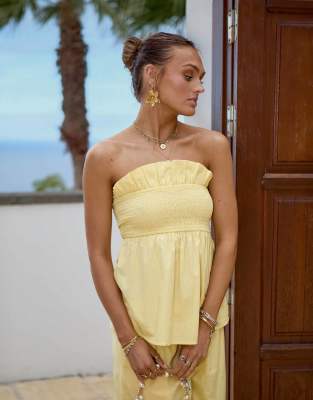 South Beach x Misha Grimes ruffle bandeau beach top co-ord in yellow