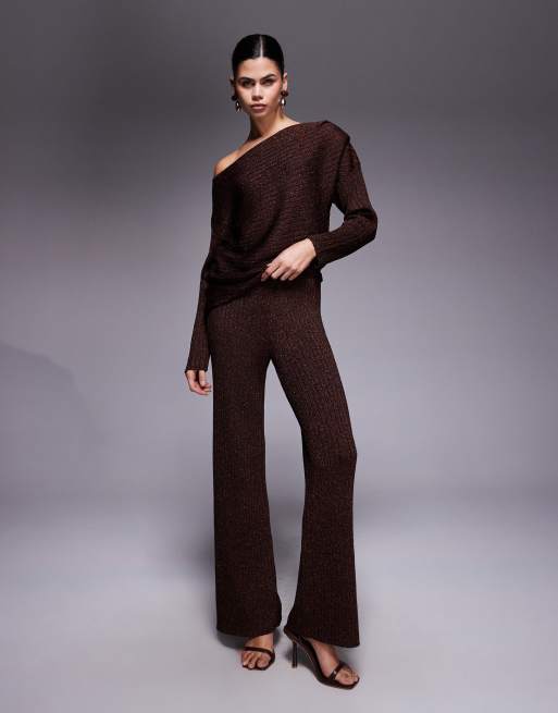 River Island glitter wide leg trouser co-ord in brown