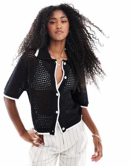 Brave Soul Loose knit collared blouse in black