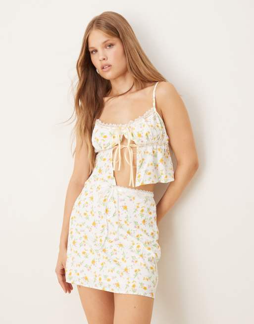 Glamorous Tie front cami top in orange pink spring floral