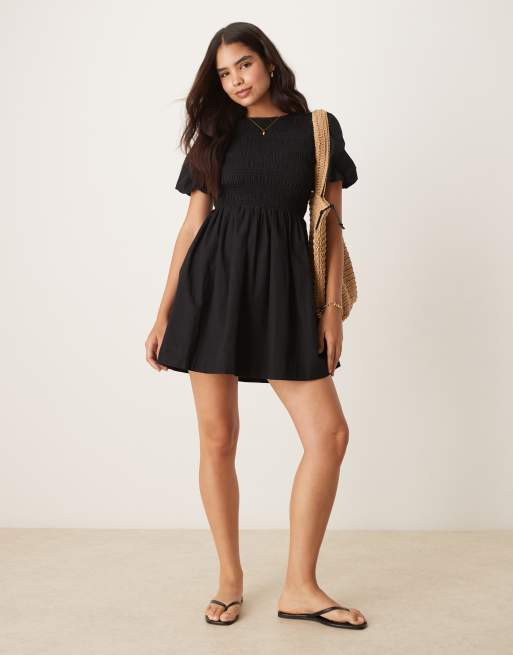 OMNES Terri shirred bodice mini dress in plain black