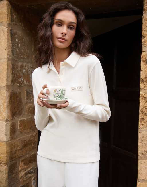 4th & Reckless ribbed collared long sleeve top co-ord in cream