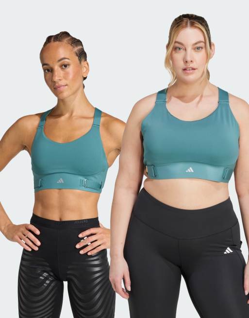 adidas performance Fastimpact luxe run high-support bra in preloved teal / preloved teal
