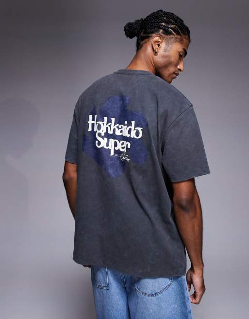 ASOS DESIGN heavyweight relaxed t-shirt in with text graphic in washed grey