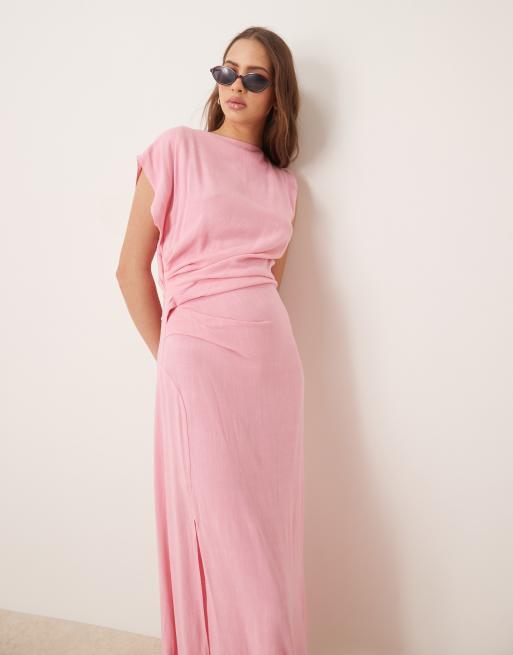 ASOS DESIGN linen open back draped waist midaxi dress in pink