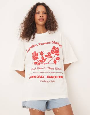 ASOS DESIGN oversized t-shirt with flower market graphic in cream