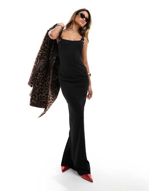 ASOS DESIGN padded strap detail square neck maxi dress in black