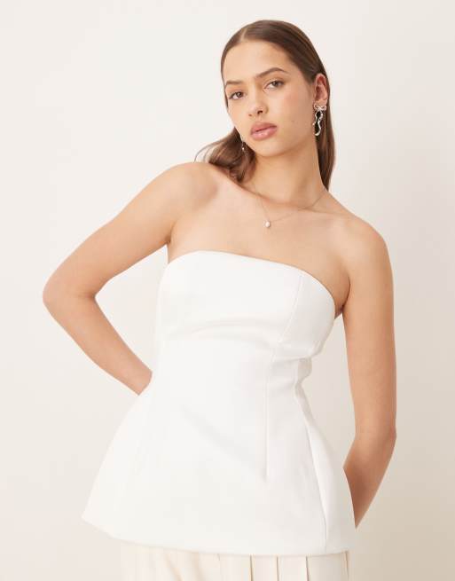 ASOS DESIGN Premium structured satin peplum hem bandeau top in white