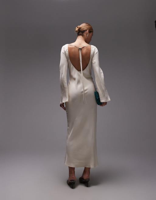 ASOS DESIGN satin angel sleeve low back maxi dress in ecru