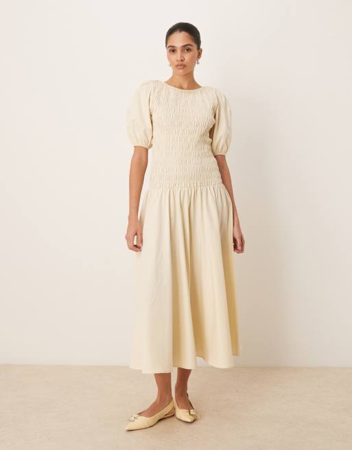 ASOS DESIGN shirred drop waist maxi dress in ecru
