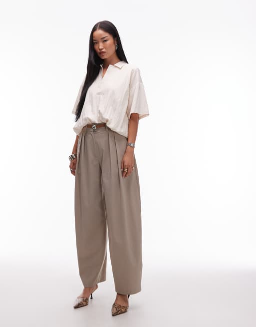 ASOS DESIGN tailored cocoon leg trouser in neutral