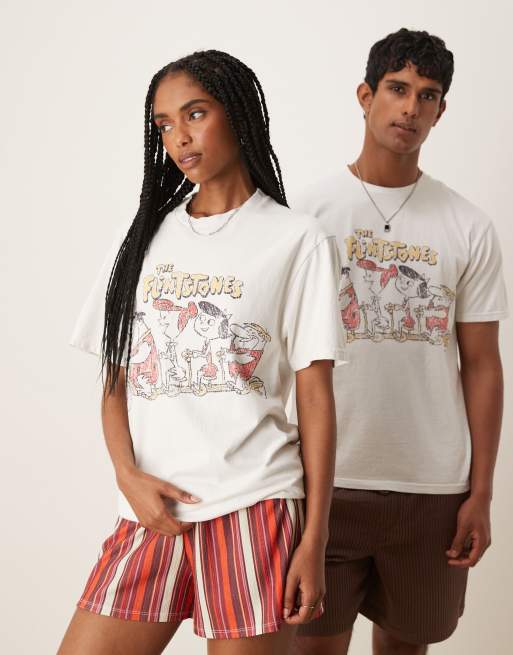 ASOS DESIGN unisex oversized t-shirt with The Flintstones print in white