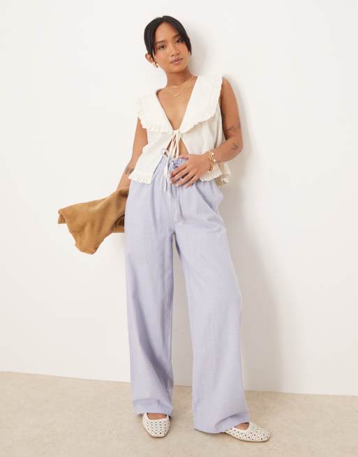 ASOS DESIGN Petite linen look pull on trousers in blue
