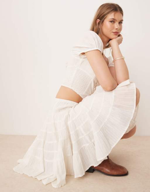 Free People tiered knee length boho skirt in clean ivory