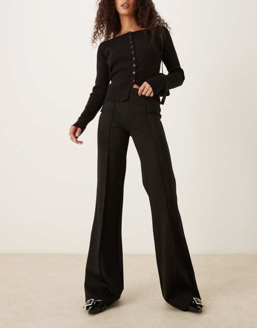 Mango pleat front flared trouser in black