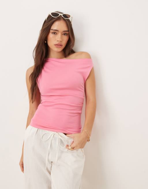 Mango slash neck off the shoulder jersey top in pink