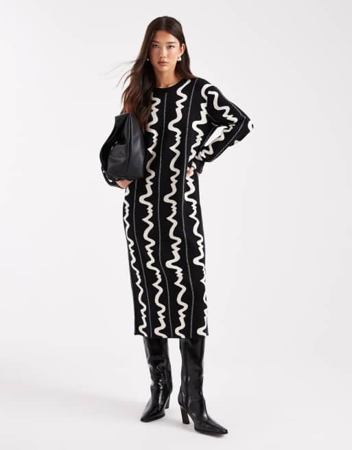 Object knitted midi dress in mono abstract print