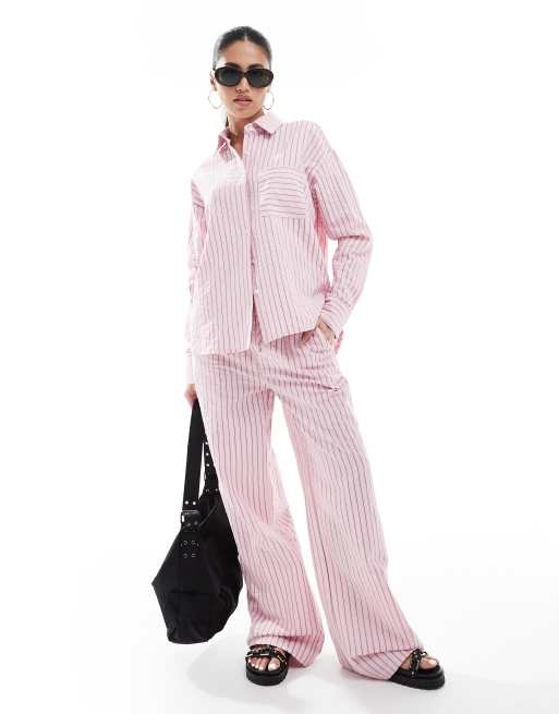Threadbare drawstring straight leg trousers co-ord in pink stripe