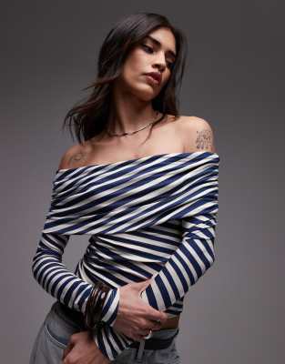 Topshop off the shoulder bardot top in blue stripe