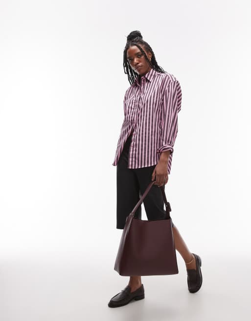 Topshop poplin shirt in purple & pink stripe