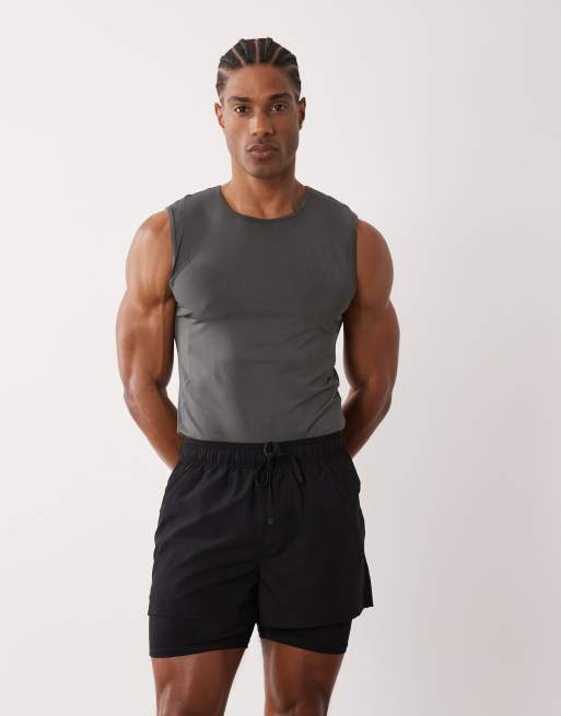 4505 2-in-1 quick dry woven running shorts with zip pockets in black