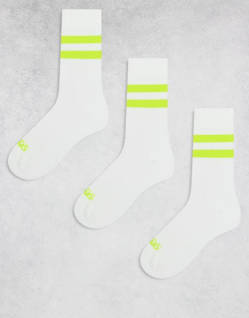 4505 3 pack 2 stripe running socks with elasticated arch support and anti bacterial finish in white with neon yellow stripe