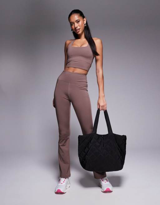 4505 active performance halter neck vest & slim kick legging co-ord in taupe