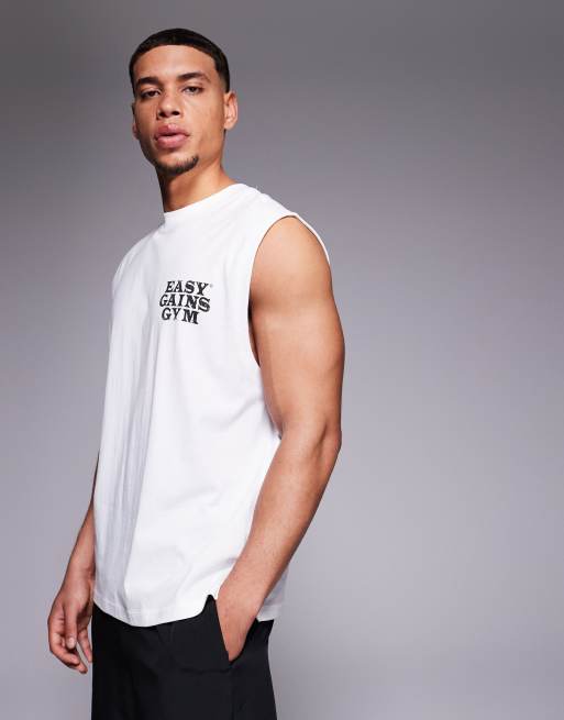 4505 cotton oversized pump training tank with chest graphic and quick dry finish in white