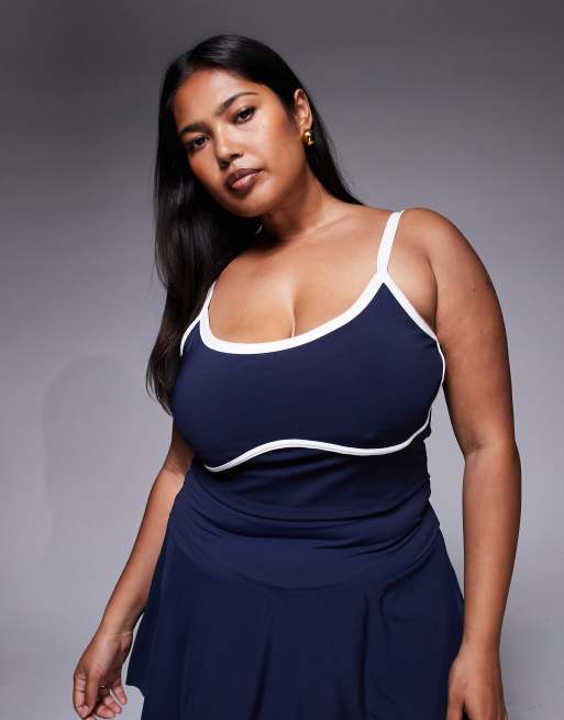 4505 Curve active vest with inner bra and piping in navy