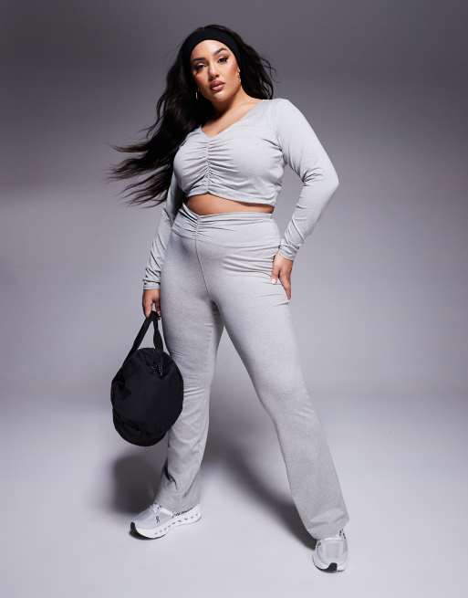 4505 Curve ruched front high waist slim kick flare leggings in grey marl