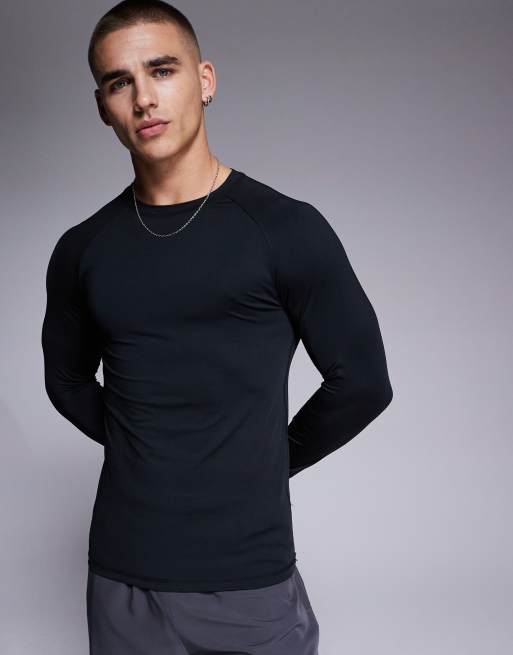 4505 Icon active quick dry muscle fit base layer training long sleeve top in black